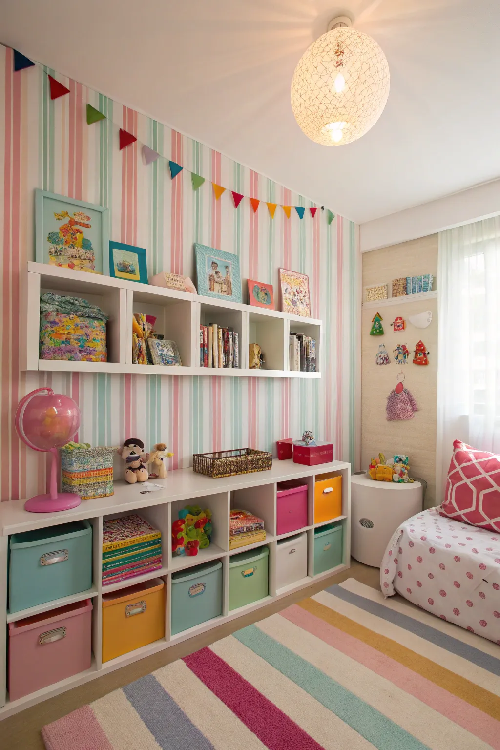 This option works beautifully for girls who enjoy art, puzzles, or design, as it subtly encourages order and imagination at the same time. Soft color palettes can keep the look playful, while bolder contrasts add a confident, contemporary flair.