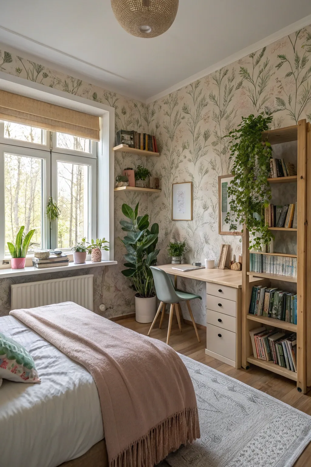 Floral wallpaper remains a classic choice for girls’ rooms, offering beauty, softness, and timeless appeal. Delicate blossoms, trailing vines, or watercolor flowers bring nature indoors and create a serene, feminine atmosphere.