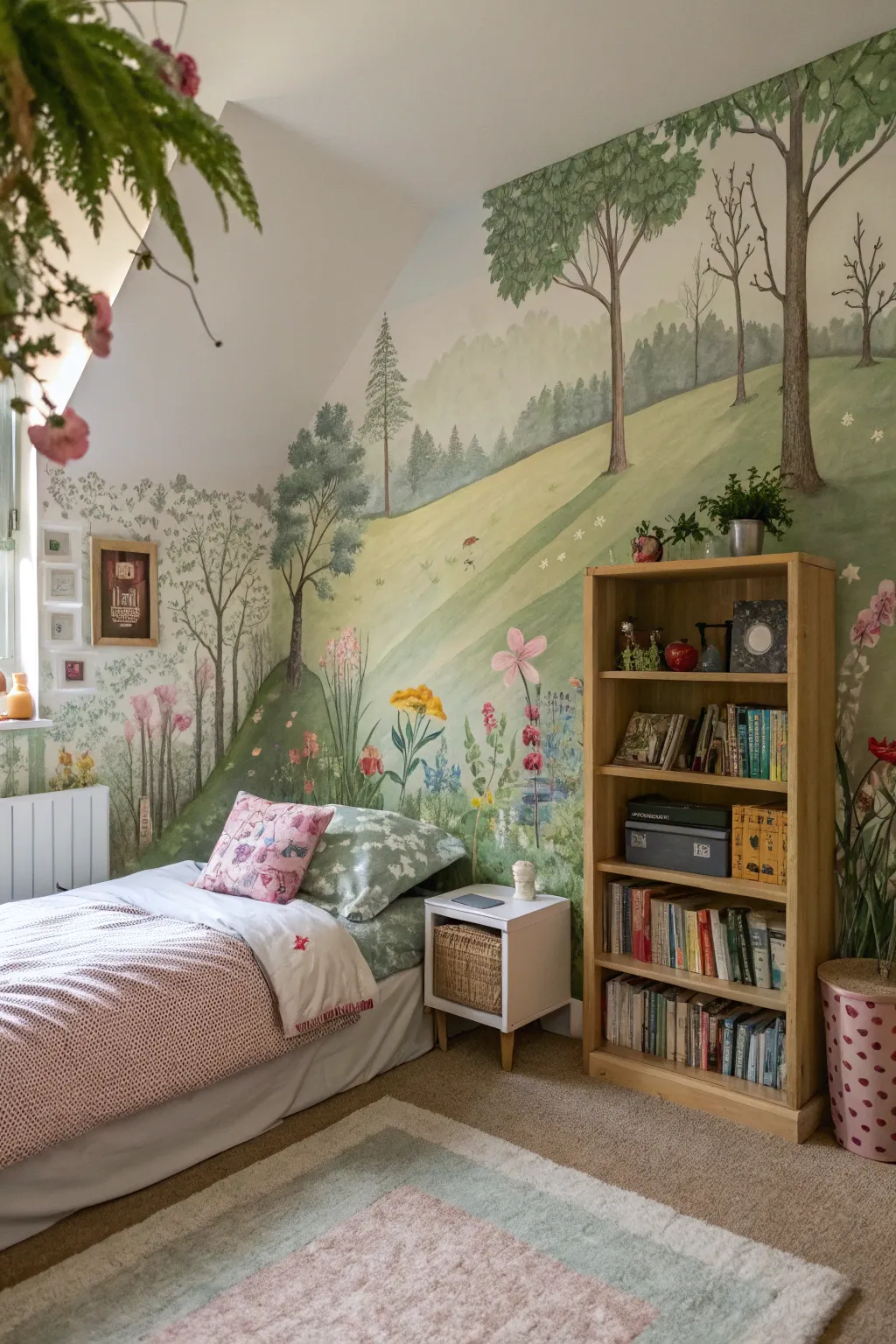 Murals turn walls into breathtaking works of art. Whether depicting enchanted forests, storybook scenes, or imaginative worlds, mural wallpapers create immersive environments. They are perfect for inspiring storytelling and creativity, transforming a simple bedroom into a place where imagination knows no bounds.
