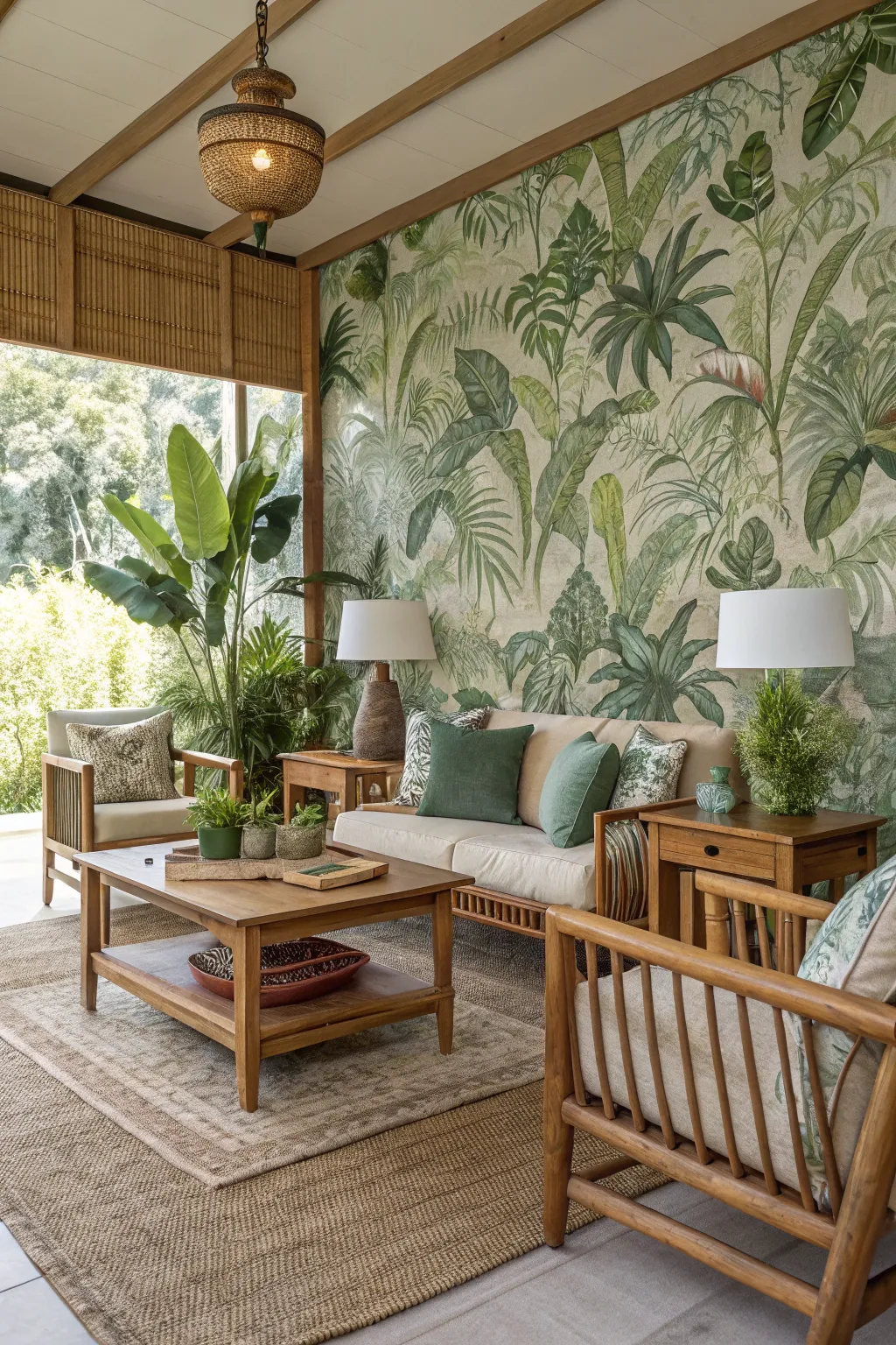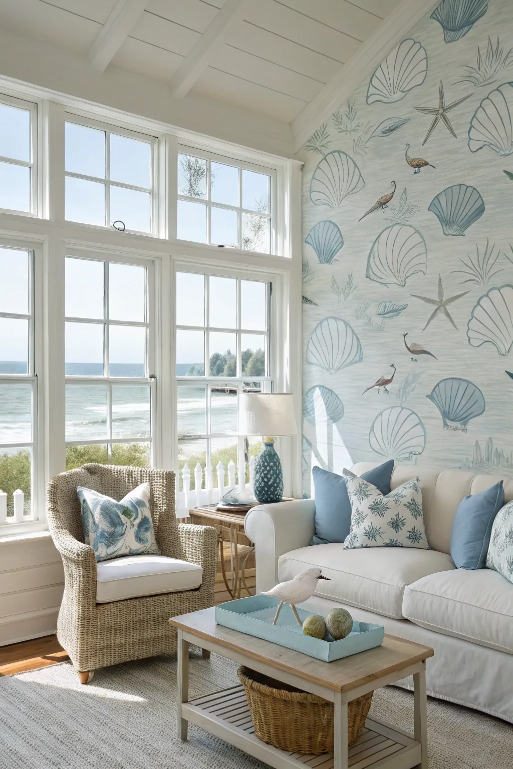 Coastal wallpaper creates a calm and airy environment. Soft blues, sandy tones, and ocean-inspired designs help the living room feel peaceful. This style is perfect for those who want a relaxed and fresh atmosphere. Natural fabrics complete the look.