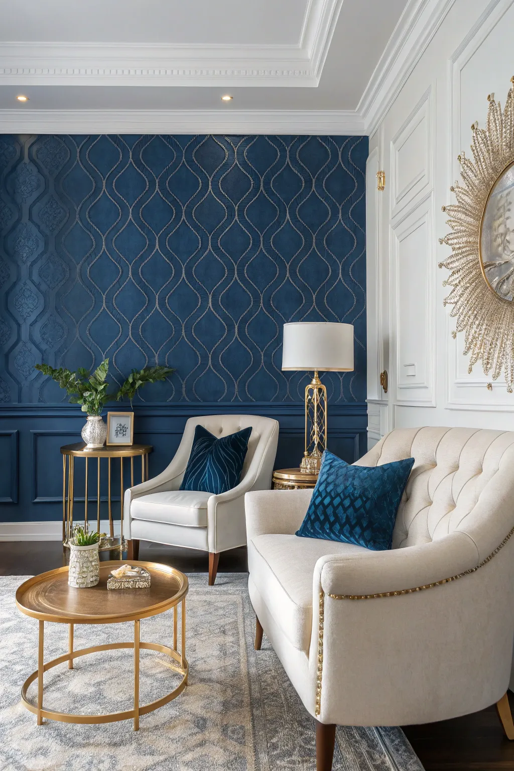 Metallic wallpapers add subtle shine to the living room. Gold, silver, or bronze details reflect light and add depth. This style works best when used sparingly. It creates a touch of glamour without making the room feel heavy.